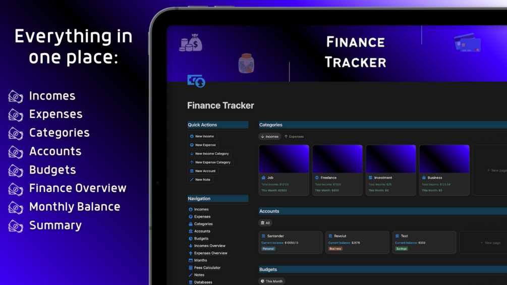 🔹 Accounts - stay on top of your bank accounts and cash and see how much you earn and spend
