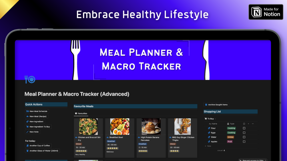 Set your calories & macros goal, add your favourite meals with counted macros and track what you eat and drink everyday with ease.
