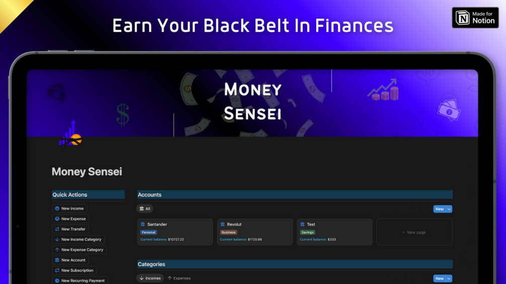 Whether you’re dreaming of earning more, tracking and optimizing your expenses, or building your asset portfolio, Money Sensei has your back.