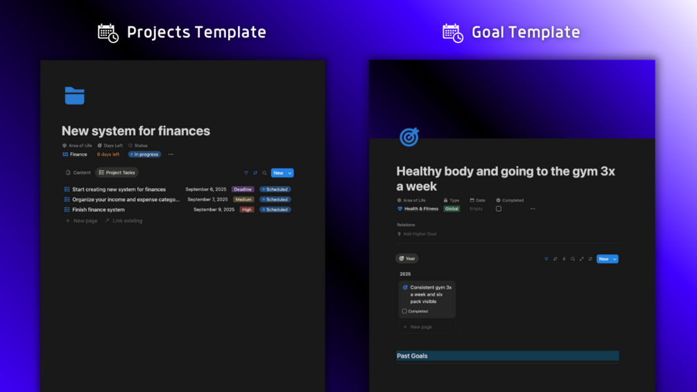 My Notion templates are pre-built systems designed to help you organize your life or business. They streamline tasks like project management, goal tracking, or personal workflows, saving you time and keeping everything in one place.