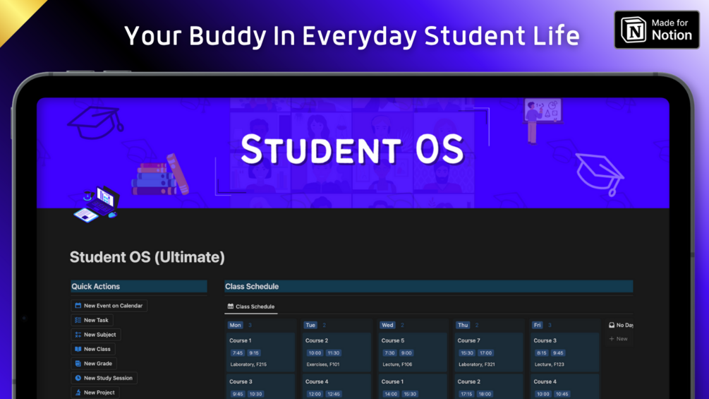 Do you want to organize your class notes, subjects, semesters, personal & school info, projects & exams deadlines in one place?