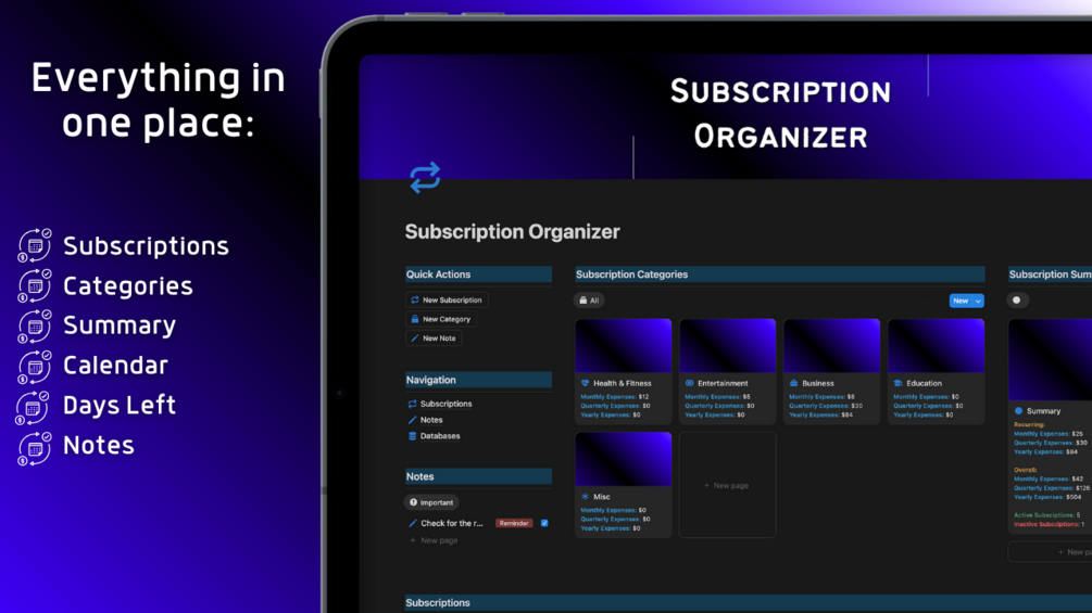 🔹 Notes - write your thoughts and reminders about your subscriptions